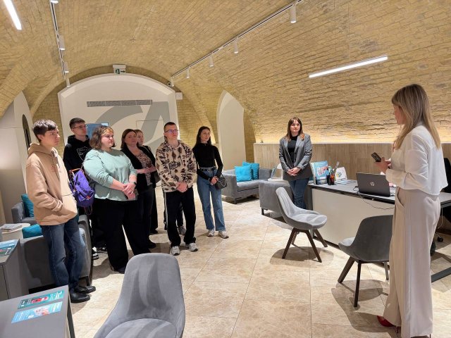Особливо захопливо провела зустріч з керівником відділення пані Оксаною, яка поділилася власним професійним досвідом та практичними аспектами роботи у банківській сфері. Під час спілкування обговорювалися питання майбутньої професії, кар’єрного зростання, мотивації працівників, а також рівня заробітної плати та системи преміювання.