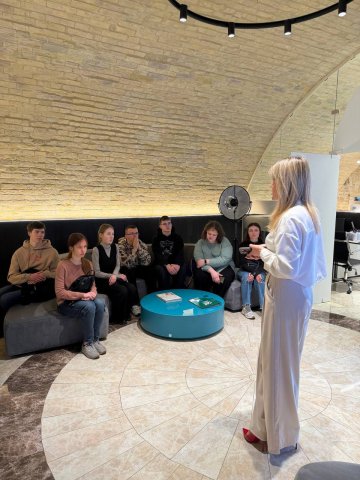 В межах візиту студенти долучилися до коротких пізнавальних лекцій, проведених працівниками банку - досвідченими практиками у сферах комплаєнсу, оцінки кредитних ризиків, захисту прав споживачів та ESG у банківській діяльності. Учасники проявили високу зацікавленість: активно ставили запитання, брали участь в обговореннях і отримали цінні практичні знання від фахівців банківської сфери. За участь в активностях від організаторів здобувачіотримали приємні подарунки від банку.