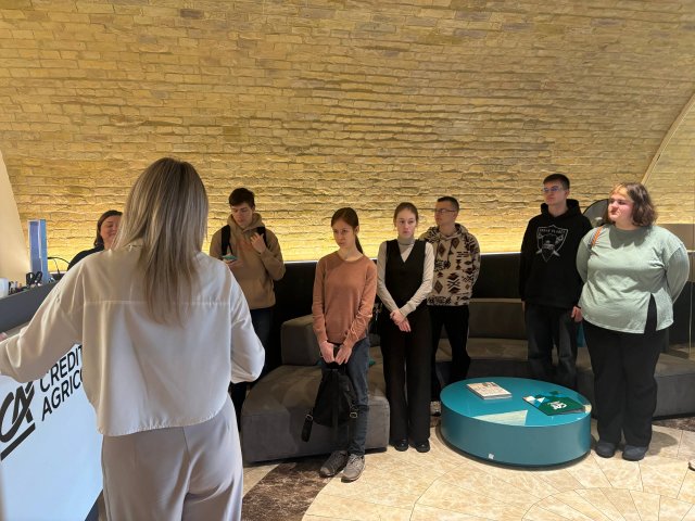 Фінансисти 2 курсу Факультету економіки та управління в рамках вивчення дисципліни «Банківські послуги» разом із викладачем Васечко Людмилою Іванівною 9 квітня 2026 року відвідали печерське відділення Креді Агріколь Банку.