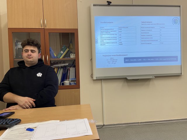 На занятті студенти працювали в мікрогрупах, обдумували ідеї для бізнесу, розраховували ціну продукту/послуги, класифікували витрати на постійні та змінні, а також рахували точку беззбитковості. Серед ідей студентів слід відмітити: виробництво екологічних чашок (EcoCup), ресторан кольорових страв (Chromatica), магазин доглядової косметики (GlowBox), продаж капсул Омега-3, застосунок для тварин (PetMatch), платформа для крипто-бізнесу (CryptoMenterPro), студія тату (HappyLand) та виробництво органічного морозива.