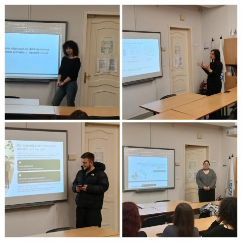 На занятті студенти презентували доповіді, у яких дослідили питання формування та оцінювання систем винагород персоналу, ефективності матеріальної й нематеріальної мотивації, впливу мотиваційних чинників на рівень продуктивності праці та лояльність працівників. У межах обговорення було проаналізовано сучасні HR-інструменти мотивації, підходи до побудови грейдингових систем оплати праці, а також роль мотивації в забезпеченні сталого розвитку організацій.