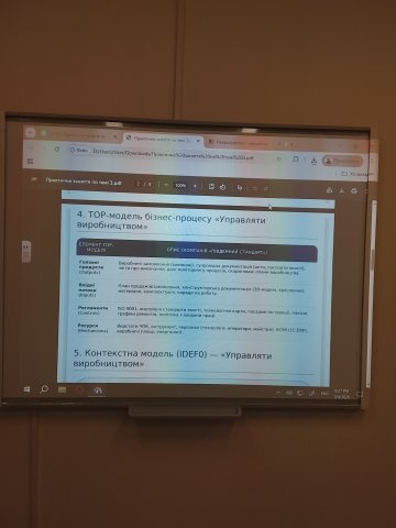 1.Навчилися будувати контекстні моделі та ТОР-моделі процесів. Це дозволяє візуалізувати складну систему управління, чітко розмежувавши вхідні ресурси, вихідні продукти, механізми виконання та регламентуючі правила.