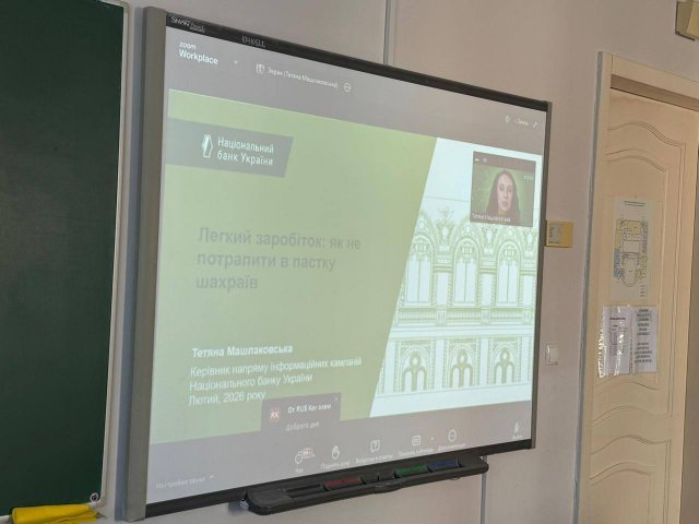 Здобувачі першого курсу освітньої програми «Маркетинг» разом із викладачем кафедри міжнародної економіки Катериною Никонюк долучилися до перегляду освітнього відеокурсу #ШахрайГудбай, підготовленого Національним банком України у співпраці з Фундацією Кредобанку.