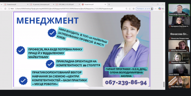 31 березня на Факультеті економіки та управління відбувся черговий ONLINE День відкритих дверей, до якого долучилися понад 30 майбутніх абітурієнтів з різних регіонів України.