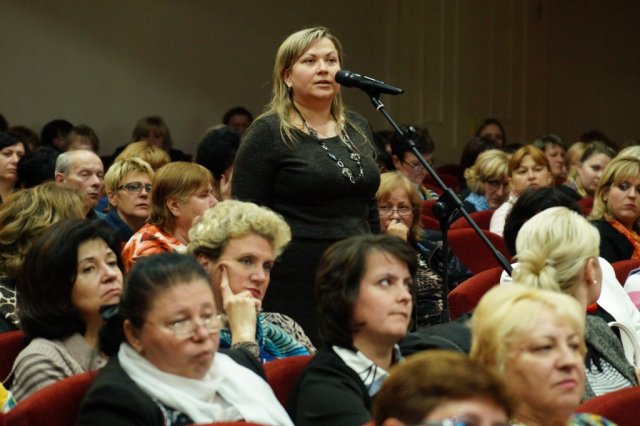 Присутні керівники навчальних закладів м. Києва у ході конференції мали можливість поставити запитання Міністру освіти і науки України та Ректору Університету та отримати вичерпну відповідь на проблеми, які хвилюють педагогічні колективи навчальних закладів м. Києва.