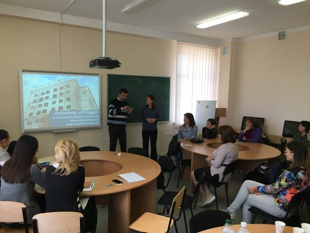 Були представлені презентації з двох сторін: про діяльність Факультету ІТ та управління та про Університет Фоджа. В рамках презентацій деканом факультету Михацькою А.В., завідувачами кафедр Поспєловою Т.В., Зеліско І.М було представлено напрями наукової діяльності кафедр управління, фінансів та економіки.