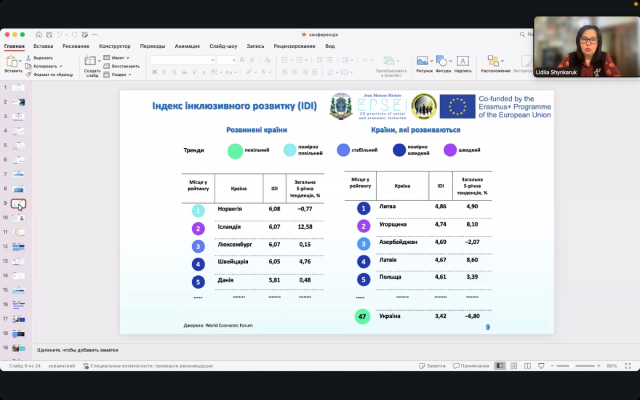 Конференція об’єднала науковців і практиків з України, Польщі, Литви, США, Ізраїлю, Індії, Австрії та інших країн, які обговорювали глобальні тенденції інклюзивного розвитку, питання продовольчої безпеки, соціальної інтеграції та співпраці з ЄС у межах проєкту Jean Monnet EPSEI - Erasmus+.