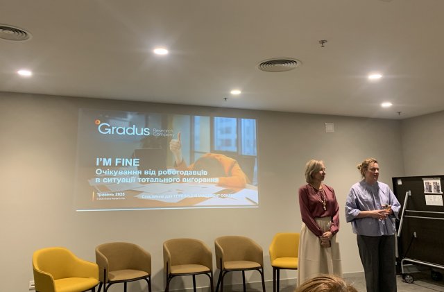 При презентації соціологічного опитування від Gradus Research Company – «I’M FINE. Очікування від роботодавців у ситуації тотального вигорання» учасники дізналися про актуальні тенденції ринку праці, нові підходи до управління персоналом та взаємні очікування бізнесу і молодих фахівців в умовах підвищеного стресу й змін.