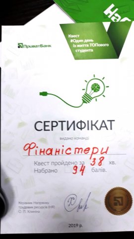 В рамках практико-орієнтованого навчання30вересня 2019 року студенти 3 курсу спеціальності «Фінанси, банківська справа та страхування» разом з доцентом Васечко Людмилою Іванівною відвідали центральний офіс Приватбанку та прийняли участь у захоплюючому квесті «Один день із життя ТОПового студента».