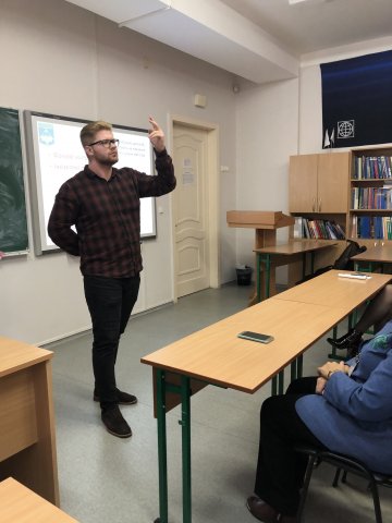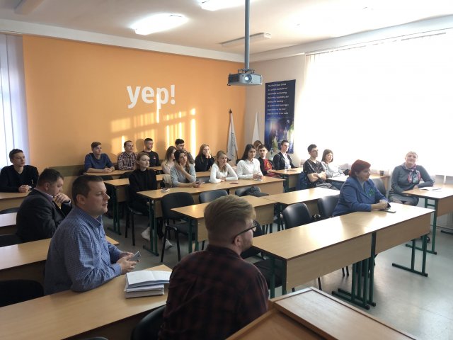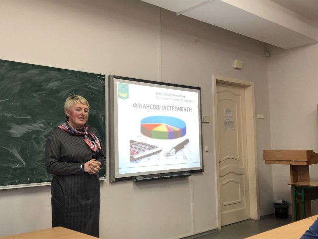 Зі студентами бакалаврату зустрілися представники кафедри фінансів та економіки, зокрема завідувач кафедри, д.е.н., доцент Рамський А.Ю., професор кафедри, д.е.н., доцент Краус Н.М., професор кафедри, д.е.н., доцент Лойко В.В., доцент кафедри, д.е.н., доцент Сосновська О.О., доцент кафедри, к.е.н. Казак О.О. Особливим гостем став випускник магістратури, а нині аспірант кафедри та її викладач Жильцов М.О.