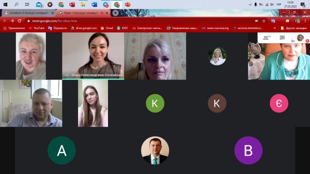 Члени експертної комісії конкурсу на кращу та актуальну інноваційну ідею (завідувач кафедри фінансів та управління, д.е.н., доц. Рамський А. Ю.;, д.е.н., доц., проф. Сосновська Ю.М.; д.е.н., доц., проф. Краус Н. М.; к.е.н., доц. Казак О.О., к.е.н., доц. Жукова Ю.М., к.е.н., доц. Обушний С.М.) оцінювали проєкти за такими характерними особливостями, як: актуальність, інноваційність, економічна ефективність, його соціальна і екологічна орієнтація, якість приготовленої презентації, рівень опису й ясність змісту бізнес-ідеї, рівень представлення студентом свого авторського доробку та аргументованість і повнота відповідей на поставленні додаткові питання в чаті.