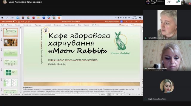 ІІ місце, за бізнес-ідею Арабаджи Кирилла (Кафе для тварин “Сats&Dogs”, керівник Жукова Ю.М.) та проєкт Марії Анатоліївни Ятлук (Кафе здорового харчування “Moon Rabbit”, керівник Краус Н.М.);