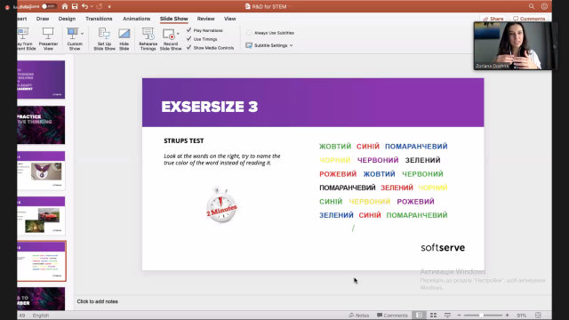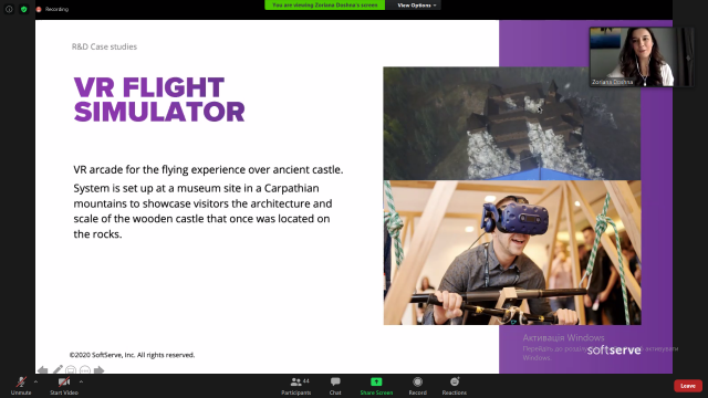 Зоряна Дошна розповіла як пройти шлях від стажера до керівника проєктами, як працювати над собою та досягти успіху. Презентувала проєкти, над якими працювала разом із своїми командами, а це і VR-симулятор, і вимірювач тиску та насиченості крові киснем за допомогою звичайної веб-камери (дуже корисна річ для розвитку телемедицини), і рухомі голограми, до яких можна доторкнутися. Також розповіла про основні характеристики проєкт-менеджера та поділилася цікавими завданнями для розвитку креативного мислення, що є невід'ємною частиною роботи в ІТ.