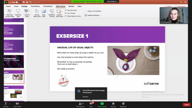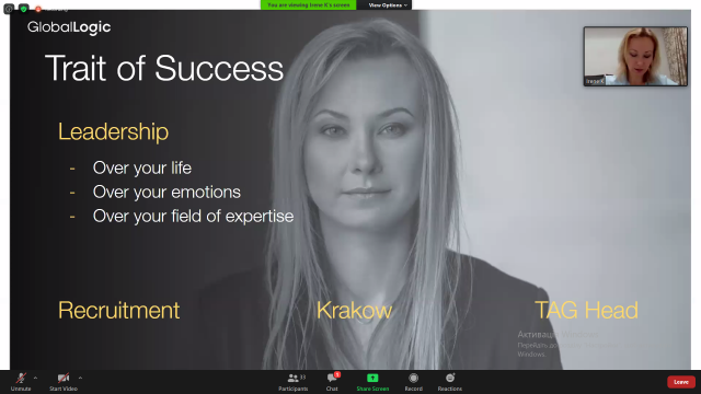 Ірина Кононенко розповіла свій шлях до ІТ, дала поради щодо self-presentation, поділилася практичним досвідом та відповіла на одне із типових питань: «Чи завжди ІТ про технології, чи все ж – частіше про людей?». Також учасниці провели бесіду зі спікеркою на питання: «Що допомагає та заважає у виборі свого шляху?» та «Чому лідерство у власному житті допомагає правильно розставити пріоритети?». Практичне завдання Ірини було спрямоване на посилення та розвиток лідерських якостей в кожному із учасників вебінару.