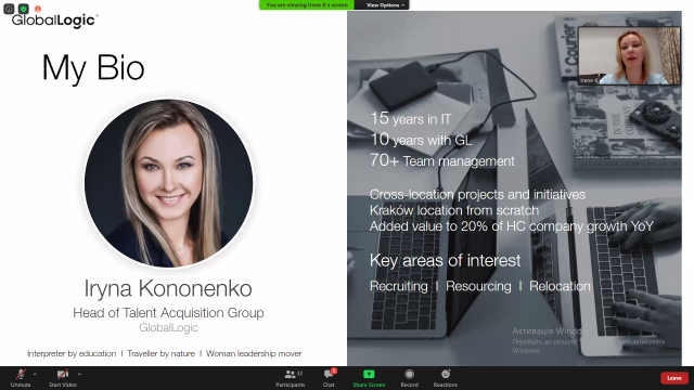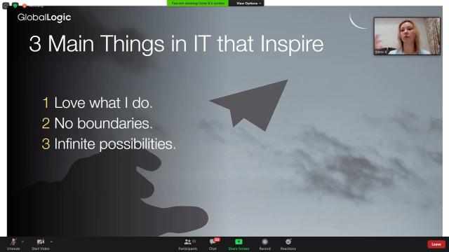 Спікерами вебінару були жінки, які досягли успіху у сфері ІТ: Зоряна Дошна – керівниця напрямку R&D products y SoftServe, Марія Модзолевська – консультантка із менеджменту технічних проектів у Infopulse Ukraine та Ірина Кононенко – молодший віце-президент, керівниця департаменту підбору талантів у GlobalLogic Ukraine. Кожна з них розповіла про свій досвід та шлях до успіху, якого вони досягли.