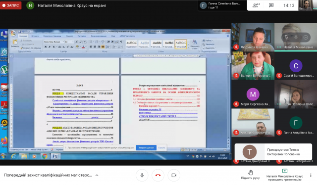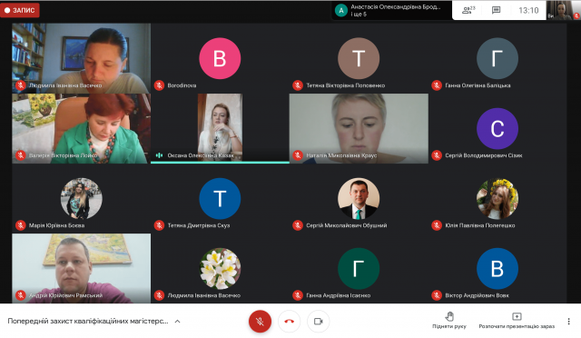 Попередній захист відбувся з метою встановлення відповідності досліджень вимогам до оформлення, змісту та структури роботи, визначення ключових положень дослідження. Також наставницька команда у складі завідувачки кафедри фінансів та економіки, д.е.н., доц. Ольги Сосновської та керівників кваліфікаційних магістерських робіт для позитивно оцінених робіт оголосила про допуск до захисту на засіданні ЕК, акцентувала увагу на дотриманні здобувачами вимог до оформлення та порядку подачі магістерської роботи до захисту, визначила організаційно-часові аспекти відповідних підготовчих процедур.