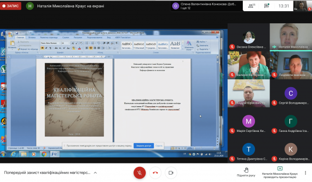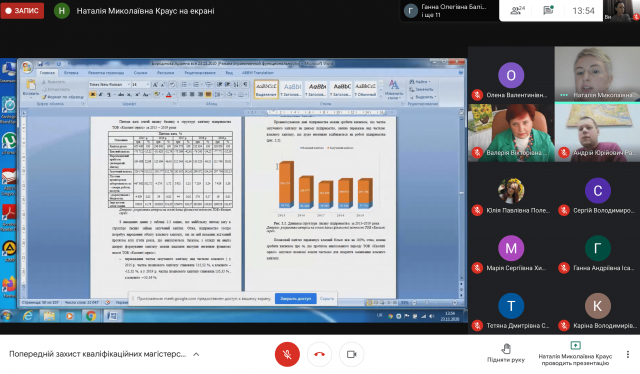 Магістр – наступний за бакалавром освітній рівень, який дає змогу прогресивній молоді з загальним базисом знань, отриманих на бакалавраті, стати «мегагуру» в певному напрямку. Навчання на другому магістерському рівні спеціальності 072 "Фінанси, банківська справа та страхування" свідчить про раціональне мислення, тяжіння до наукових пізнань та удосконалення навичок проведення наукових досліджень у тісному взаємозв’язку із прикладними кейсами сучасного ринку фінансових, банківських та страхових послуг. Черговим підтвердженням цьому стали результати попереднього захисту кваліфікаційної магістерської роботи, який відбувся 23 листопада 2020 р. на кафедрі фінансів та економіки в режимі online на платформі GoogleMeet.