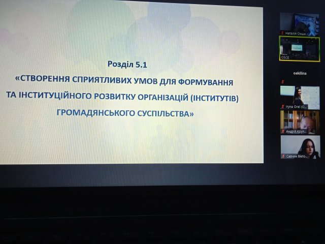 Доцент кафедри управління Акіліна Олена Володимирівна зі своєю магістранткою Харченко Мар’яною Григорівною прийняли участь у громадських слуханнях проекту нової Національної стратегії сприяння розвитку громадянського суспільства, які відбулися в онлайн-форматі. Основною метою участі у цьому заході було поглиблення свого розуміння проблематики громадського контролю в системі публічного управління та апробація результатів випускної кваліфікаційної роботи магістра з державного управління на тему «Удосконалення громадського контролю в системі публічного управління в Україні».