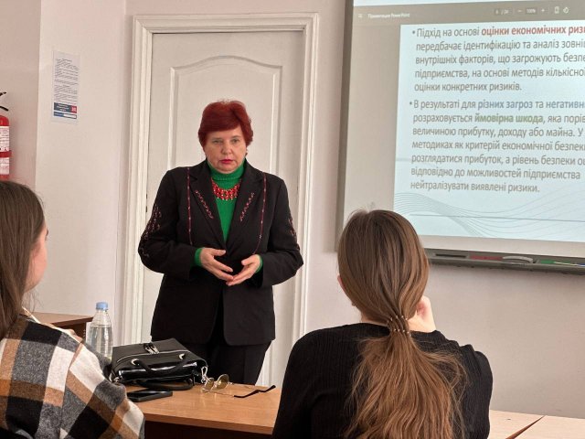 14 квітня 2025 року о 13:45 в аудиторії 505 Б відбулась відкрита лекція професора кафедри міжнародної економіки Лойко Валерії Вікторівни з навчальної дисципліни «Економічна безпека та ризик-менеджмент» на тему «Прогнозування і моніторинг економічної безпеки суб’єкта господарювання» для здобувачів першого (бакалаврського) рівня спеціальності 051 «Економіка», освітньої програми «Економіка міста. Урбаністика».