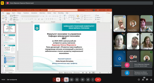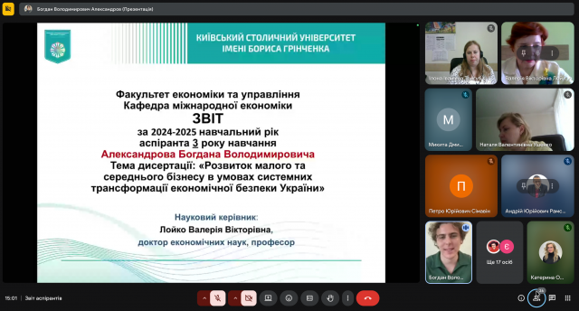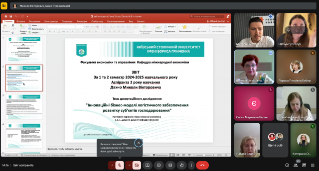 9 червня на кафедрі міжнародної економіки Факультету економіки та управління Київського столичного університету імені Бориса Грінченка відбувся щорічний звіт аспірантів ОНП «Економіка».