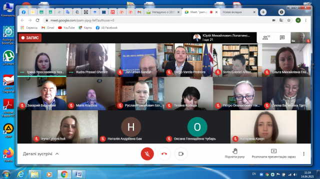 Перша частина пленарного засідання була проведена англійською мовою на якій з виступили з доповідями 8 учасників з закордонних вузів-партнерів, серед них: