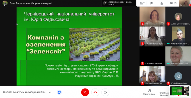 Студенти економічного факультету Чернівецького національного університету імені Юрія Федьковича були запрошеними учасниками даного наукового заходу (Бізнес-проєкт Компанія з озеленення “Зеленсвіт” Унгуляк Олег Васильович студент економічного факультету Чернівецький національний університет ім. Юрія Федьковича; Бізнес-проєкт «Створення мобільної кав'ярні» Олександр Мирославович Ільчук - студент 2-го курсу 273-1 групи, денної форми навчання, спеціальності 073 «Менеджмент» економічного факультету Чернівецький національний університет ім. Юрія Федьковича).