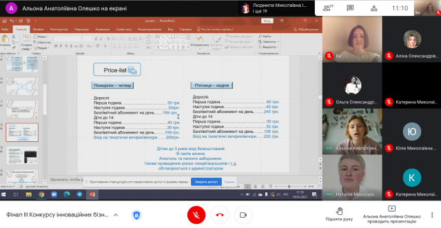 В рамках Фестивалю науки на Факультеті інформаційних технологій та управління КУБГ та в межах роботи Центру провайдингу інновацій та цифрового підприємництва 19 травня 2021 року відбувся Фінал ІІІ Конкурс інноваційних проєктів “Фабрика бізнес-ідей та стартапів” в рамках вивчення дисциплін “Підприємництво та бізнес”, “Менеджмент і маркетинг” студентами спеціальностей Економіка та Менеджмент.