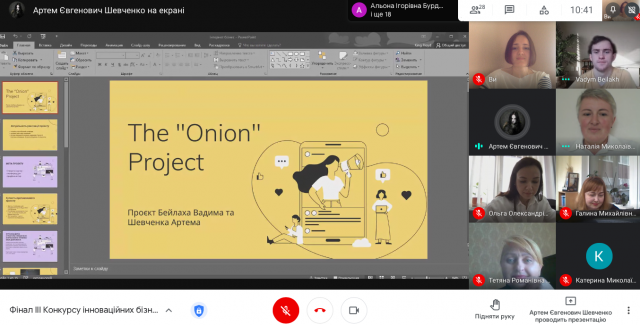 1. The OnionProject (Бейлах Вадим, Шевченко Артем), Факультету інформаційних технологій та управління Київського університету імені Бориса Грінченка (науковий керівник: к.е.н, доцент Краус Катерина Миколаївна);