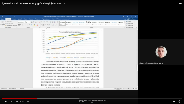 26.10.2021 р. відбулось практичне заняття з курсу «Урбаністика. Сучасне місто» для студентів 2 курсу групи Екб-1-20-4.0д з теми «Динаміка світового процесу урбанізації». Викладач – Швець Павло Анатолійович, доцент кафедри фінансів та економіки.