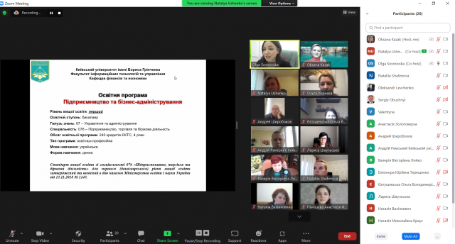 Сфера підприємництва була і лишається надзвичайно важливою складовою як розвитку глобальної світової економічної системи, так і розвитку особистості. Адже саме підприємцям властиво вміти ризикувати та брати на себе відповідальність за власний успіх та щастя у житті та національному розвитку. Сучасні умови пандемічної кризи спонукають підприємства до впровадження інноваційних управлінських технологій бізнес-адміністрування. І підготовку саме таких фахівців покликана забезпечувати освітньо-професійна програма «Підприємництво та бізнес-адміністрування», громадське обговорення якої відбулося онлайн-форматі з використанням платформи Zoom 26 січня 2022 р. на Кафедрі фінансів та економіки.