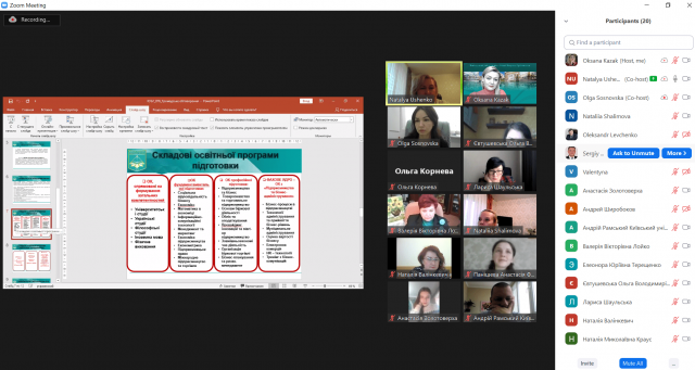 Присутні визначили надзвичайну актуальність представленої програми, підкреслили її позитивні риси та амбітний фокус у визначенні ключових компетентностей, а також її перспективну затребуваність на ринку освітніх послуг та стійку конкурентоспроможність її випускників. Цікаву дискусію та схвальні відгуки викликала структура представленої освітньо-професійної програми, її опис та змістовна наповненість освітніх компонентів, прикладна орієнтованість, були надані відповідні рекомендації. Робоча група на чолі з її керівником д.е.н., професором Ушенко Наталією Валентинівною взяла до уваги цінні поради та пропозиції. Завідувачка кафедрою д.е.н., професорка Сосновська Ольга Олександрівна висловила слова вдячності усім присутнім за продуктивну небайдужість до представленої програми та долученість до активного обговорення з метою покращення сфери вищої освіти та забезпечення якості її освітніх послуг.