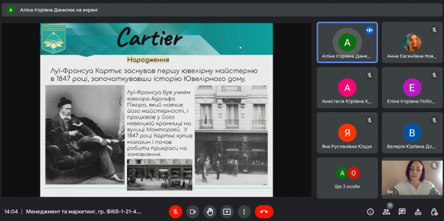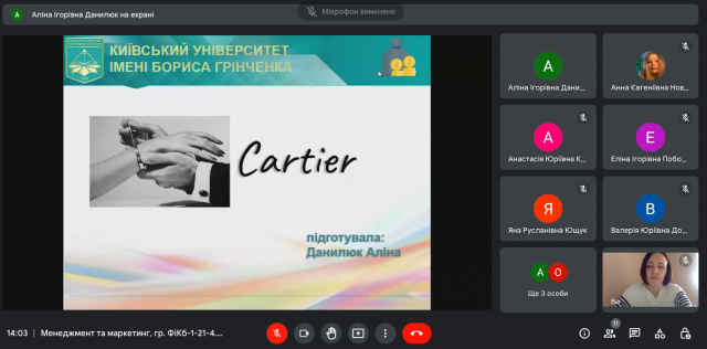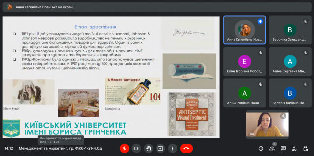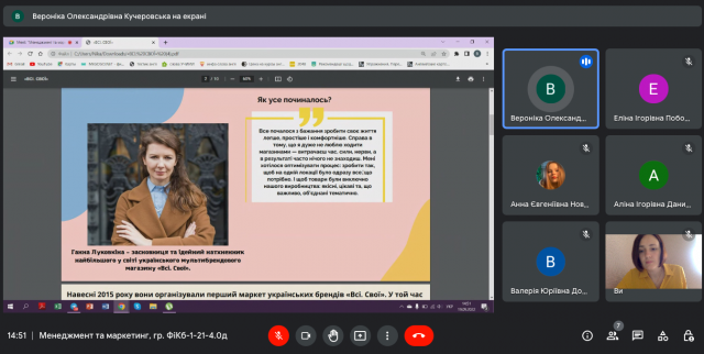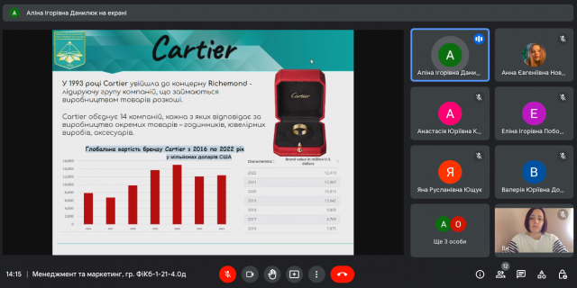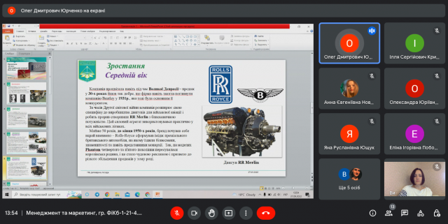 З презентаціями доповідали: Новицька Анна (компанія “Johnson&Johnson”), Ющук Яна (ТОВ “ФМ ХЛАДОПРОМ”), Поботаєва Еліна (фармацевтична компанія “Дарниця”), Кучеровська Вероніка (маркетплейс “ВСІ. СВОЇ”), Кирилюк Анастасія (компанія “Kodak”), Данилюк Аліна (ювелірний магазин “Cartier”), Юрченко Олег (компанія “Rolls-Royce”) та інші.