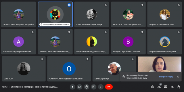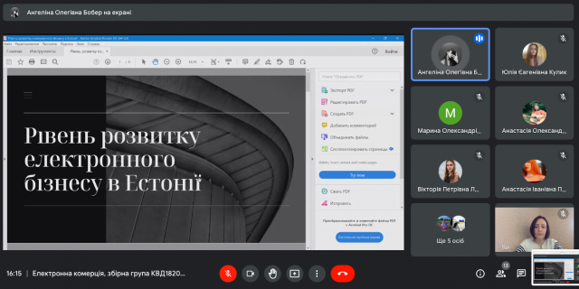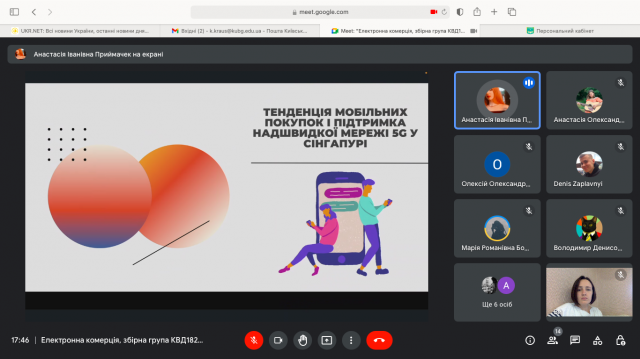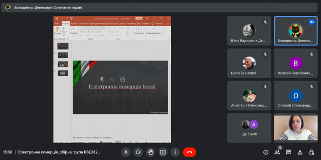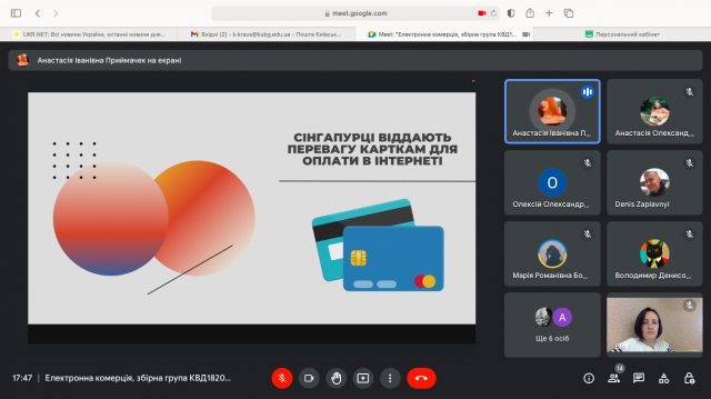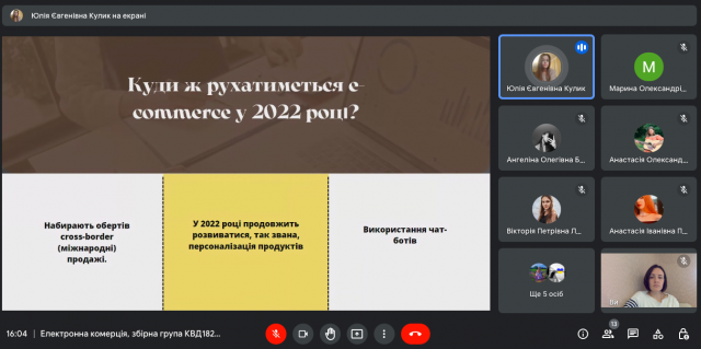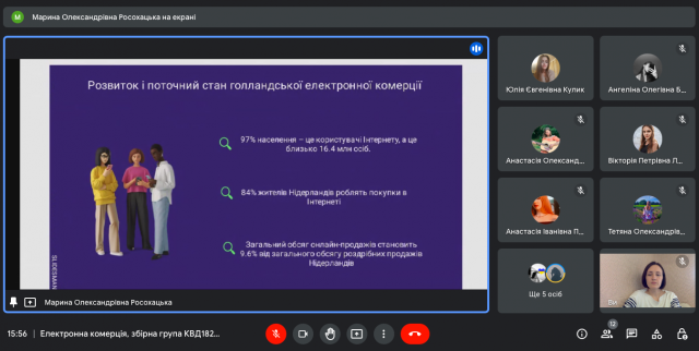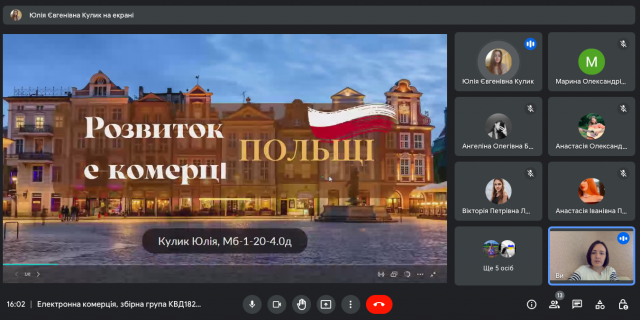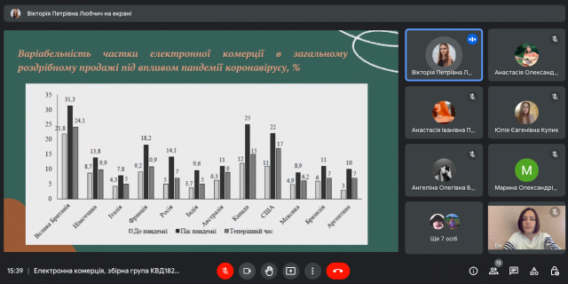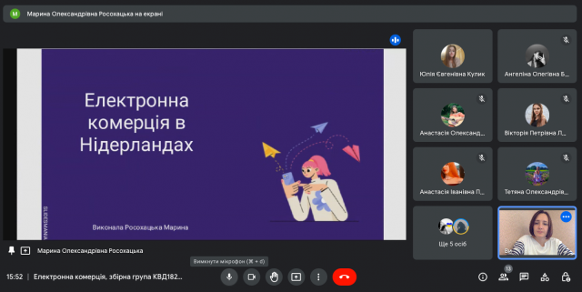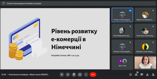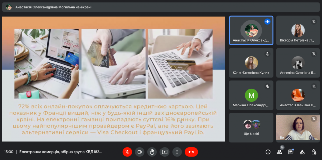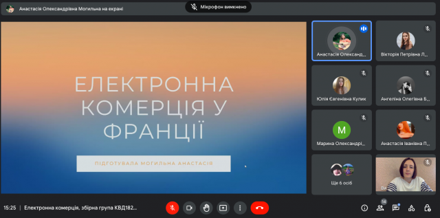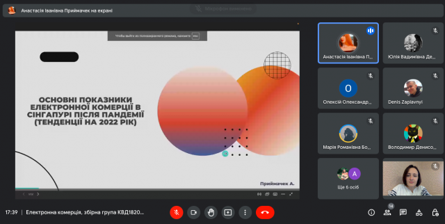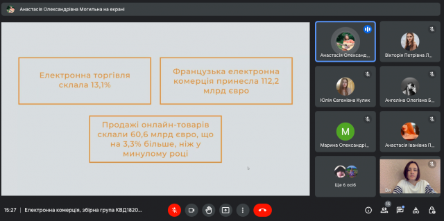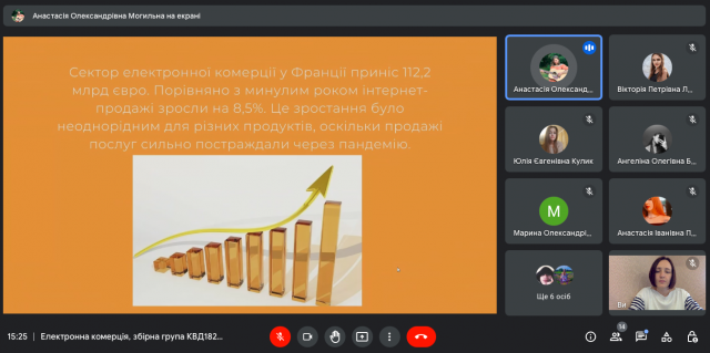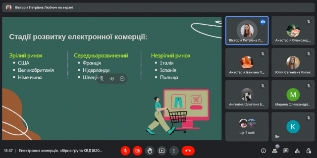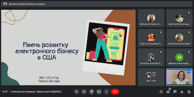 27 вересня 2022 року в ході вивчення навчальної дисципліни “Електронна комерція” студенти IІІ-го курсу спеціальності 073 Менеджмент групи Мб-1-20-4.0д представили підготовлені презентації і виступили зі своїми доповідями з питань стану, проблем та перспектив розвитку електронної комерції в різних країнах світу в умовах сучасних викликів, зумовлених пандемією Covid-19 та війною рф проти України.