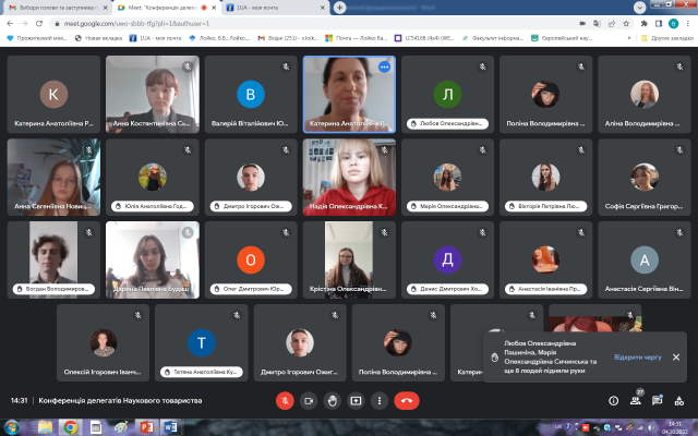 04.10.2022 року відбулися вибори голови та заступника голови Наукового товариства студентів, аспірантів, докторантів та молодих вчених Факультету економіки та управління. На виборні посади балотувалися аспірант першого курсу, спеціальності 051 "Економіка» Александров Богдан Володимирович та студент 3 курсу, групи ЕКб-1-20-4.0д, спеціальності 051 «Економіка» Ющенко Валерій Віталійович. За результатами таємного голосування (простою більшістю) обрано головою Наукового товариства Александрова Богдана Володимировича, заступником голови - Ющенка Валерія Віталійовича. Вітаємо новообраних голову за заступника голови Наукового товариства! Бажаємо їм творчого натхнення, конструктивних наукових здобутків, побільше однодумців серед членів Наукового товариства!