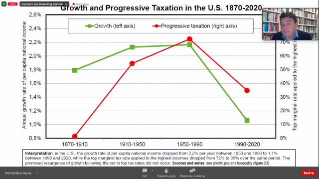 Лекція професора присвячена походженню економічної нерівності та методам боротьби з нею. Тома Пікетті підкреслив свою роботи над концентрацією та розподілом достатку за останні 250 років. Лектор стверджує, що рівень повернення капіталу у розвинених країнах постійно вищий, ніж рівень економічного зростання, що спричинить збільшення нерівності достатку у майбутньому. Він вважає це проблемою, з якою можна боротися перерозподілом через прогресивний глобальний податок на достаток. Під час лекції Тома Пікетті розповів про свою нову книгу «Коротка історія рівності». Сподіваємося, вона незабаром стане новим світовим бестселером!