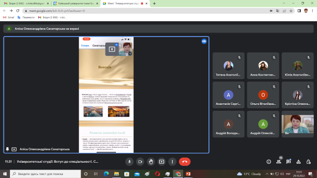 29 жовтня та 5 листопада 2022 р. відбулися заняття зі студентами 1 курсу спеціальності 051 Економіка. Заняття проходили в центрі Муніципальної економіки в рамках викладання навчальної дисципліни «Університетська освіта: Вступ до спеціальності» (викладач: доктор економічних наук, професор Лойко Валерія Вікторівна).
