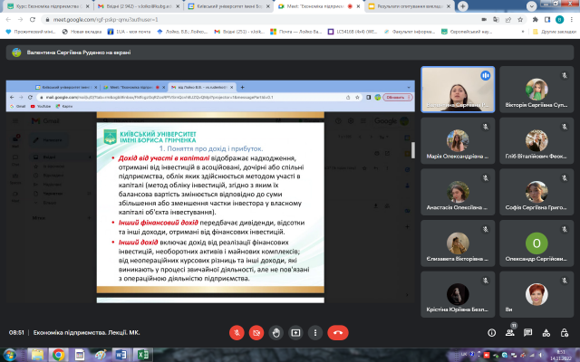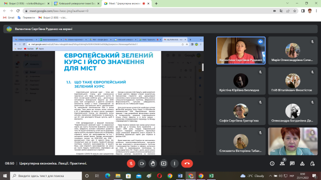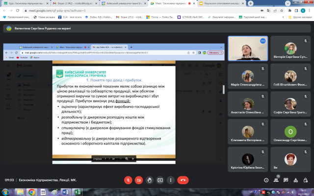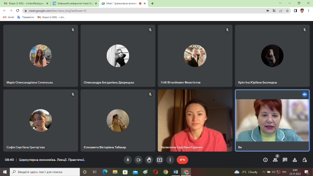 Під час проходження науково-викладацької практики аспірантка 3 курсу Валентина Руденко Провела лекційні та практичні заняття зі студентами 2 курсу спеціальності Економіка за навчальними дисциплінами Економіка підприємства (14.11.2022р.) та Циркулярна економіка (23.11.2022 р.).