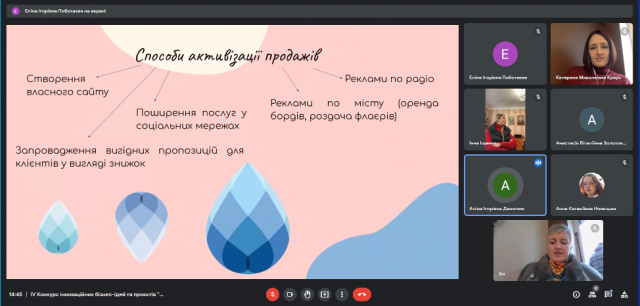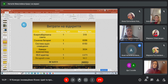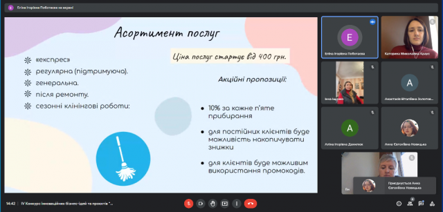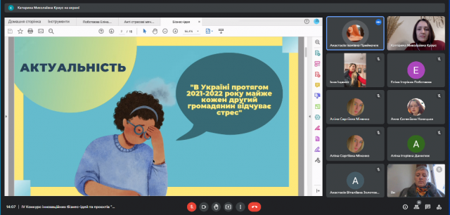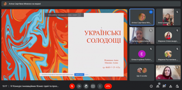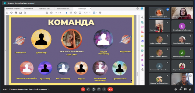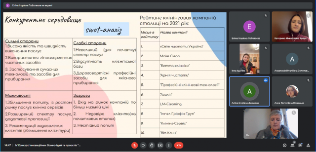 29 листопада 2022 року в рамках триденної науково-дослідної сесії відбувся фінал ІV Конкурсу інноваційних бізнес-ідей та проєктів “Бої стартапів: інновації та управління ними”, що, як і кожного року, об’єднав креативних і цілеспрямованих студентів-учасників різних спеціальностей та різних університетів. Результатом активної роботи студентів в Центрі функціонального менеджменту (керівник – к.е.н., доцент Краус К.М.) став захист студентських бізнес-проєктів. Серед учасників конкурсу були як студенти Київського університету імені Бориса Грінченка, так і запрошені гості з Полтавського національного педагогічного університету імені В.Г. Короленка.