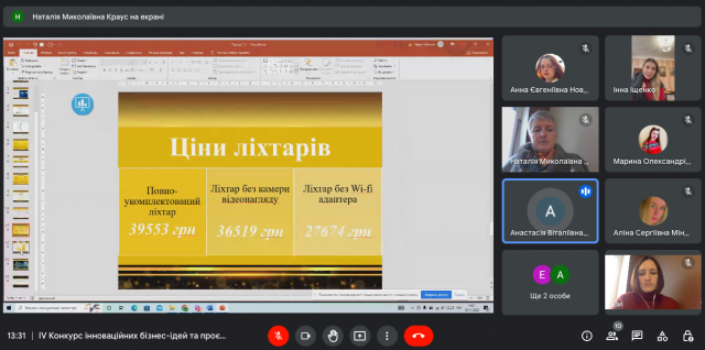3) “Розумне освітлення вулиць” (студентки Фінанси, банківська справа та страхування Київського університету імені Бориса Грінченка Анастасія Чередніченко та Анастасія Золотоверха, керівник д.е.н., професор Краус Н.М.) – ІІІ місце