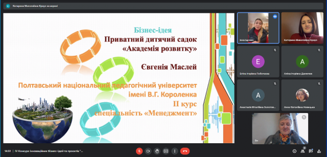 5) “Приватний дитячий садочок “Академія розвитку” (студентка спеціальності Менеджмент Полтавського національного педагогічного університету імені В.Г. Короленка Євгенія Маслей, керівник к.е.н. Іщенко І.С.)