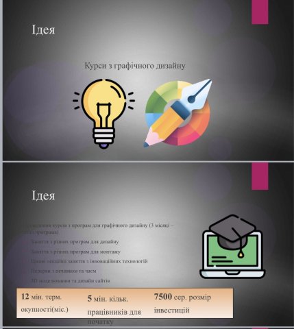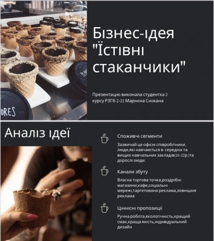 Студенти отримали проектне завдання розробити бізнес-модель своїм попередньо спродукованим, обґрунтованим та підданим попередній експертизі ідеям. Сформовані команди обирали ідею шляхом прийняття спільного рішення, у процесі чого відпрацьовували навички командної роботи.