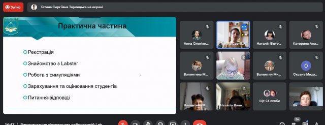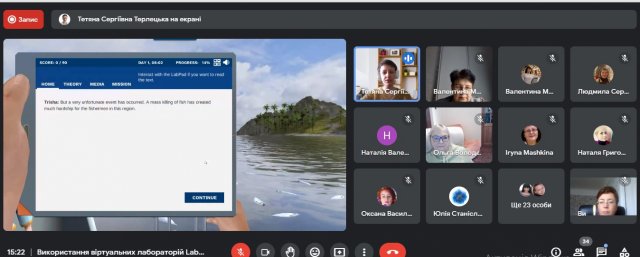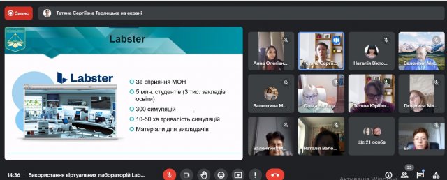 Тому 24 лютого 2023 року гарант освітньої програми «Менеджмент організацій», Акіліна О.В., та представники групи забезпечення цієї програми мали змогу отримати нові знання та практичні вміння з використання платформи Labster. Навчальний онлайн-захід було проведено молодшим науковим співробітником НДЛ цифровізації освіти, Терлецькою Т.С. Вона детально пояснила технічні особливості роботи з ресурсами платформи, питання налаштування віртуальних лабораторій, зарахування й оцінювання здобувачів вищої освіти.