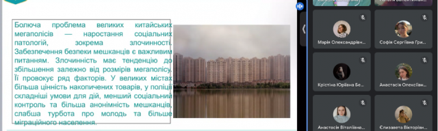 Потім надали слово студентам 2 курсу ОПП «Економіка міста. Урбаністика», які представили свої доповіді. Анастасія Балюра розкрила сутність урбанізації як світового глобалізаційного процесу та її економічний зміст. Питання впливу урбанізації на розвиток сучасних міст обговорили після доповіді Крістіни Безлюдної. Питання особливостей функціонування поліцентричних метрополій у європейських країнах розкрито у доповіді Григор’євої Софії. Характеристику сучасних китайських мегаполісів надала у своїй доповіді Марія Сичинська. Супрунюк Вікторія розглянула проблеми мегаполісів Китаю. Єлизавета Табакар зосередилась на екологічних питаннях розвитку сучасних міст. Гліб Феоктистів зосередив увагу слухачів на перевагах і недоліках економічного розвитку метрополій-столиць.