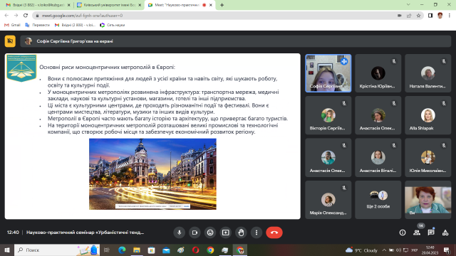 20 квітня 2023 р. відбувся науково-практичний семінар «Урбаністичні тенденції в світовій економіці». З вітальним словом та короткою промовою до учасників семінару звернулась завідувачка кафедрою міжнародної економіки, доктор економічних наук Алла Василівна Шлапак. Алла Василівна має значний досвід практичної роботи саме в муніципальній структурі управління. Вона депутат Київської міської ради п’яти скликань (V-IX скликань), перший заступник голови Постійної комісії Київської міської ради з питань бюджету та соціально-економічного розвитку.