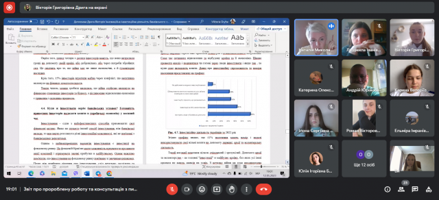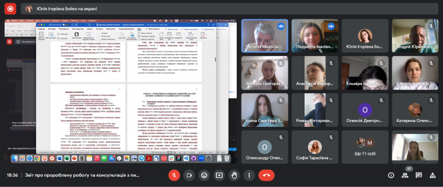 Студенти 4 курсу (першого освітнього рівня “бакалавр”) спеціальності 072 “Фінанси, банківська справа, страхування та фондовий ринок” успішно пройшли відкритий передзахист перед членами кафедри фінансів, що відбувся 12 травня 2023 року. За підсумками передзахисту, професорсько-викладацький склад кафедри відзначив набуття, на даному етапі навчання, студентами навичок та вмінь з питань надання якісної оцінки управління фінансово-економічною діяльністю підприємств, компаній та банківських установ. Зустріч відзначалась активною дискусією між викладачами та студентами в частині оформлення бакалаврських робіт.