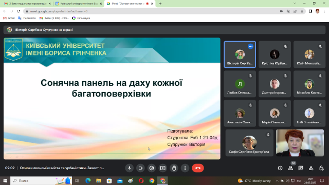 По завершенню презентації студентських проєктів з підсумковим словом виступила гаран ОПП «Економіка міста. Урбаністика» Жукова Юлія Миколаївна. Вона подякувала студентам за сміливі та оригінальні ідеї їх проєктів, підтримала їхню ініціативу щодо удосконалення зон відпочинку міста та вирішення інших нагальних для містян проблем. Наголосила на необхідності докладати зусиль у післявоєнній відбудові міст України.
