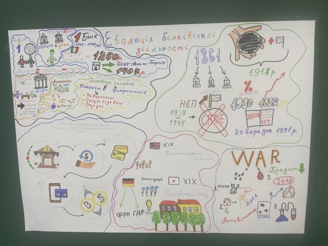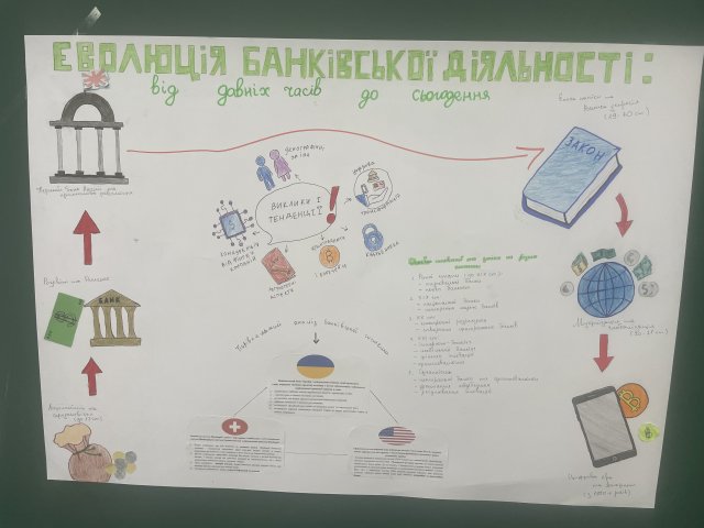 В рамках Кейсу: «Еволюція банківської діяльності: від давніх часів до сьогодення» студентам ІІ курсу спеціальності «Фінанси, банківська справа, страхування та фондовий ринок» було запропоновано дослідити історію банківської діяльності, починаючи з давньої Месопотамії та завершуючи сучасними тенденціями, обговорити ключові ролі банків у різні історичні періоди та їх вплив на економіку та суспільство, визначити основні інновації та зміни в банківський сфері на різних етапах її розвитку та основні виклики і тенденції, що впливають на сучасну банківську систему, включаючи інтернет-банкінг, криптовалюти.