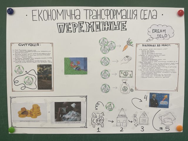 Студенти І курсу спеціальності «Фінанси, банківська справа, страхування та фондовий ринок» працювали з Кейсом: «Економічна трансформація села «Переможне»», в якому необхідно було проаналізувати ситуацію в селі використовуючи поняття сутності і функції грошей. Під час роботи студенти дослідили які функції грошей стали видимими у селі після введення грошей як засобу обміну, запропонували власну валюту, а також шляхи подальшого розвитку економіки села в контексті використання грошей.