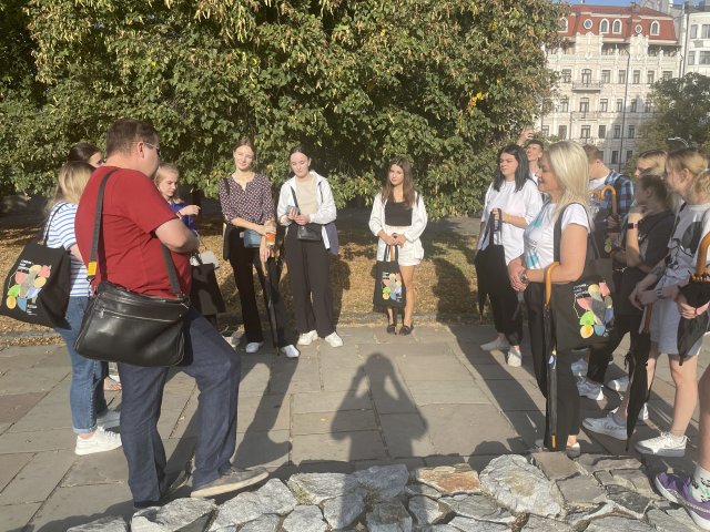 25 вересня 2023 року відбулось виїзне заняття з дисципліни «Банківська справа» для групи ФіКб12240д ІІ курсу, яке розпочалось на вулиці Андріївський узвіз, 23. Це була піша екскурсія «Таємниці гривні вилицями Києва», яку було проведено Центром фінансових знань «Талан» –проєктом Національного банку України у сфері фінансової грамотності. Під час екскурсії студенти дізналися, де зароджувалася власна грошова одиниця – гривня в бурхливі часи Української Революції 1917–1921 років, де приймалися рішення щодо її дизайну та введення в обіг, де відбувався друк перших українських кредитових білетів, а також, де жив та працював видатний український художник-графік, творець української гривні – Георгій Нарбут.