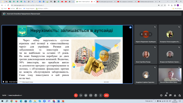 Студенти 6 курсу (другого освітнього рівня “магістр”) спеціальності 072 “Фінанси, банківська справа, страхування та фондовий ринок” успішно прозвітували про готовність до передзахисту магістерських робіт перед членами кафедри фінансів, що відбувся 28 вересня 2023 року. За підсумками обговорення ходу написання робіт, професорсько-викладацький склад кафедри відзначив набуття, на даному етапі навчання, студентами навичок та вмінь з питань надання якісної оцінки управління фінансово-економічною діяльністю підприємств, компаній та банківських установ. Зустріч відзначалась активною дискусією між викладачами та студентами в частині оформлення магістерських робіт.